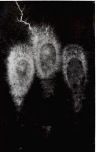 A significant contribution to the study of these photographs was made by a talented Byelorussian scientist Jacob Narkevich-Yodko in the end of the Nineteenth century. He was an independent landowner and spent most of his time on his estate above the river Neman. There he actively experimented with electricity, applying it in agriculture and medicine. A straight parallel with modern medicine can be drawn from the description of experiments on the stimulation of plants with electrical current, on electrotherapy, and magnetism by J. Narkevich-Yodko. But the scientific achievements of our time are not just “the new as a well-lost old”. This is a new convolution of perception. In the end of the Nineteenth century, when the principles of electricity were only emerging, when the main source of light was a kerosene lamp, the searching investigators were trying to apply electricity to the most different areas of life. They were as if naming the chapters of a new book, but had not enough power to write the contents. Therefore, we find the sources of one or another modern scientific direction in the works of the enthusiasts of the Nineteenth century.