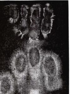 J. Narkevich-Yodko developed his own original technique for making electrophotographs. He made more than 1500 photographs of fingers of different people, plant leaves, grain, and in the 1890’s this research attracted attention in the scientific community. In 1892 J. Narkevich-Yodko presented for the professors of St. Petersburg Institute of Experimental Medicine, after which he was appointed a “Member-Employee of this Institute” by the order of the Institute patron, the Prince of Oldenburg. The results of Narkevich-Yodko created such an impression upon the scientific community that in 1893 a conference on electrography and electrophysiology was organized in St. Petersburg University. In the same year Narkevich-Yodko visited the scientific centers of Europe: Berlin, Vienna, Paris, Prague, Florence and gave lectures there. His experiments on electrography were acknowledged as important and envisaging further development everywhere. Narkevich Yodko received medals at several exhibitions, and at the Congress in France in 1900 he was nominated a professor of electrography and magnetism.