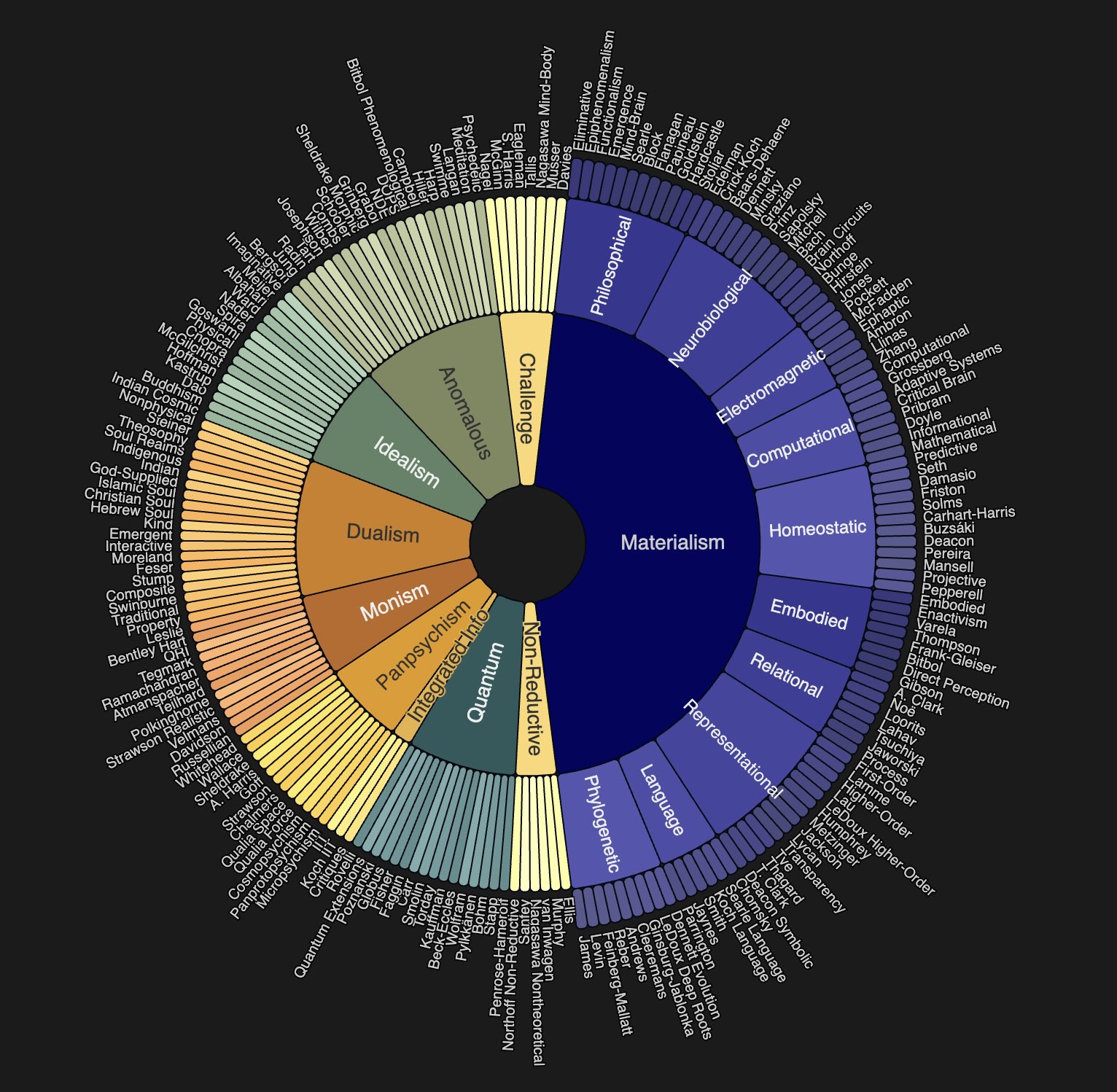 The Consciousness Atlas is an interactive web app that visualizes more than 325 theories of consciousness. It is based on Robert Lawrence Kuhn’s 2024 paper, “A Landscape of Consciousness”. The Atlas maps theories that address phenomenal consciousness – the subjective feel of experience, such as the redness of red.
